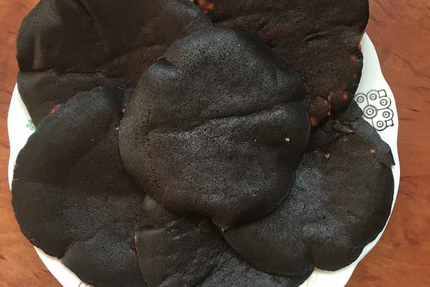 ШАГ 4 Прогреть антипригарную сковороду и жарить оладьи без масла до появления пузырьков по всей поверхности, затем аккуратно перевернуть с помощью лопатки и жарить ещё 20-30 секунд.