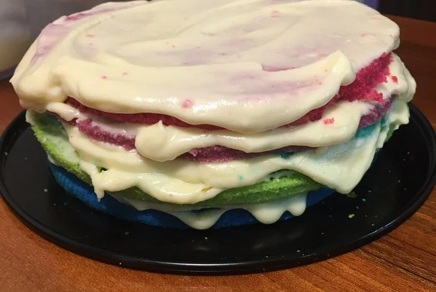 ШАГ 5 Промазываем коржи кремом. Боковые части и верхушку.