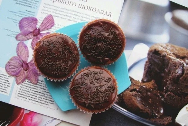 ШАГ 5 Выложить всё в формочки для кексиков, заполнив чуть больше половины.