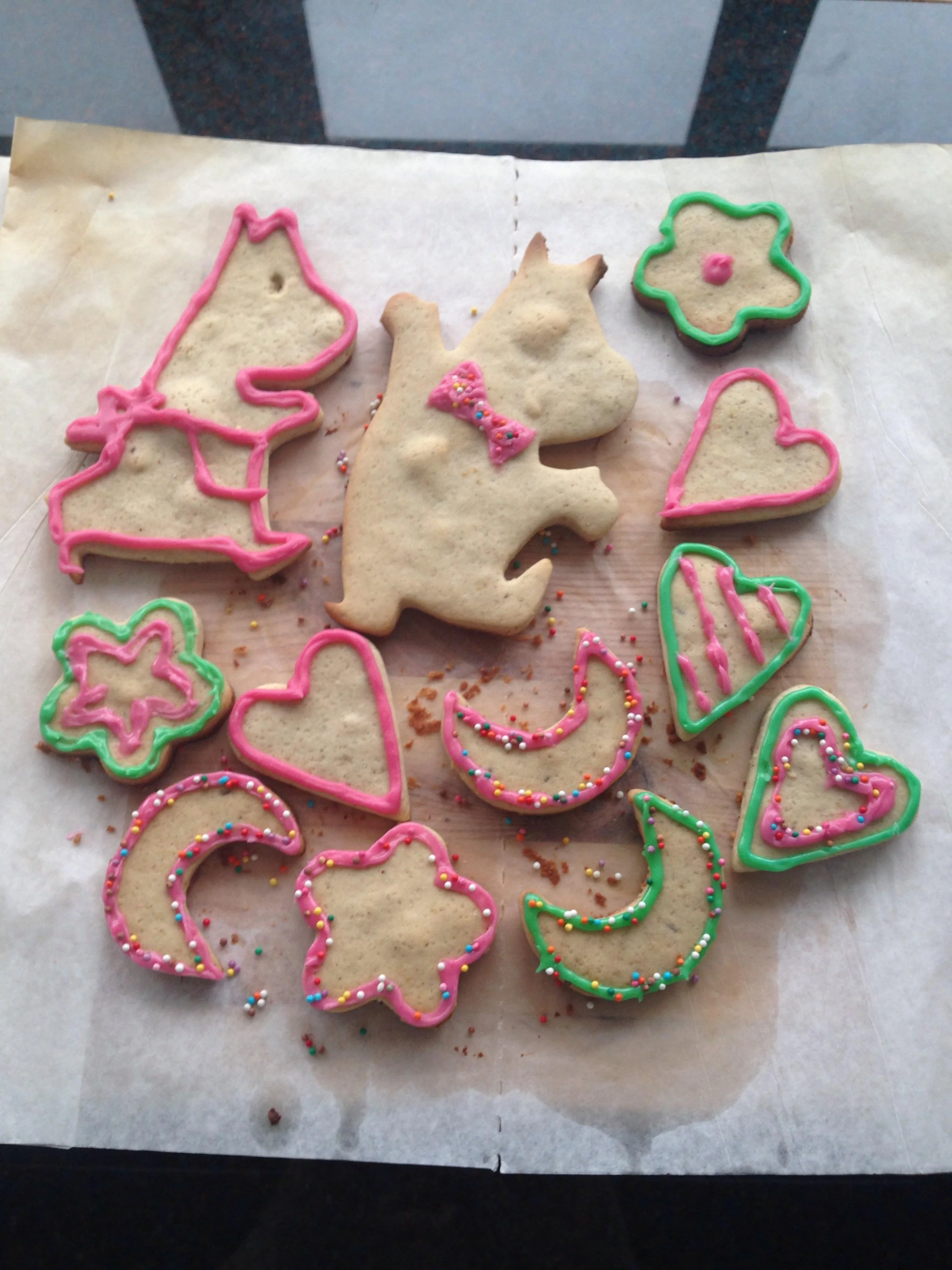 ШАГ 3 Раскатать тесто на столе застеленном пергаментом, так при транспортировке на противень ваши человечки не потеряют форму. Готовый пласт должен быть толщиной около 5 миллиметров, не больше.