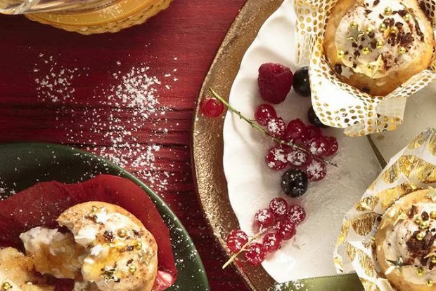 ШАГ 4 Маффинам дать остыть. Сливки крепко взбить с корицей и сахарной пудрой. Затем с помощью кондитерских приспособлений украсить маффины.