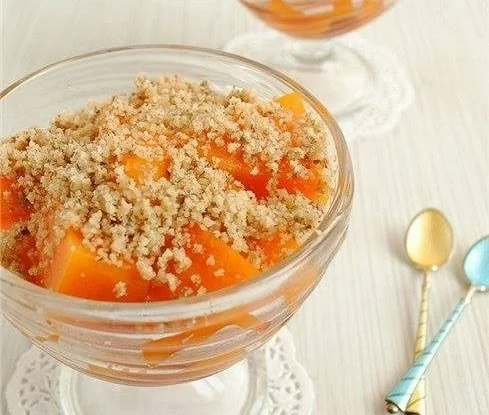 ШАГ 2 Затем готовую тыкву переложить шумовкой на тарелку, дать остыть, полить медом и посыпать орехами.