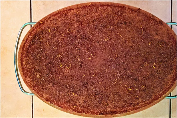 ШАГ 9 Сверху обильно присыпать какао через сито. Чёрный шоколад и цедру лимона натереть на мелкой тёрке. Можно добавить цедру мандарина или апельсина.