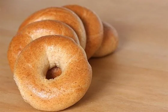 ШАГ 5 Поднявшееся тесто обомните, переложите на рабочую поверхность, присыпанную мукой, и разделите на 20 равных частей. Каждую часть вытяните и скатайте в колбаску длиной 8–10 см, соедините и защипните концы, чтобы получился бублик. Выложите противни смазанным маслом пергаментом. Разложите бублики на расстоянии 3–4 см друг от друга. Накройте чуть влажными полотенцами и поставьте расстаиваться на 30–40 мин.