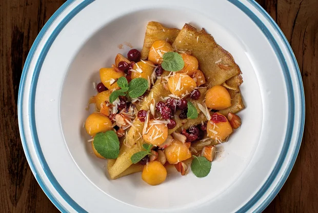 Блины с яблоком, клюквой и миндалем