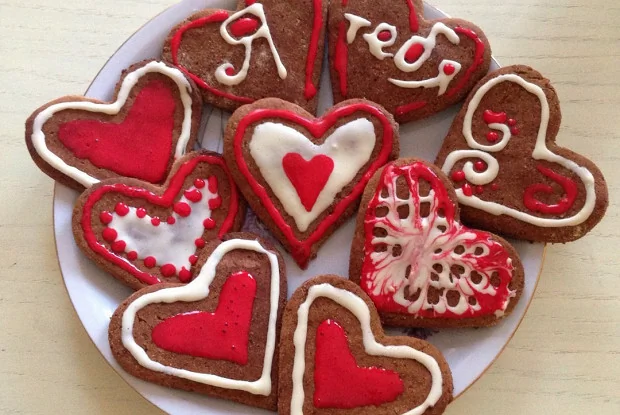 ШАГ 16 Глазурь выложить в кондитерский мешок (плотный пакет, медицинский шприц без иглы) и наносить на подостывшие пряники (у меня была тематика ко Дню Св. Валентина)