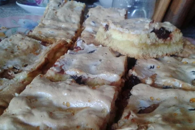 ШАГ 9 После достать пирог из духовки, выложить белки, распределить и поставить обратно на 20 мин. Белки должны подрумяниться.