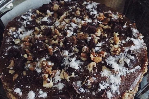 ШАГ 14 Смазать остатками крема верх и бока. Украсить орехами, шоколадной крошкой или любыми другими ингридиентами.