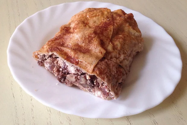 ШАГ 7 Армянский лаваш (упаковка 200 гр) разрезать пополам. Из 2-ух упаковок выйдет 4 половинки — на 4 штруделя.