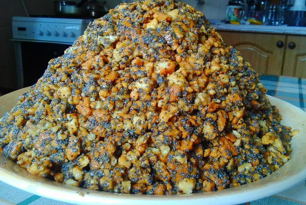 ШАГ 5 Готовые коржи поломать на мелкие кусочки, выложить в миску. Туда же добавить по вкусу мак и арахис.