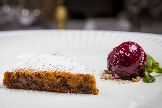 Морковно-апельсиновый пирог с сорбетом из черной смородины