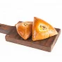 ШАГ 4 Поднявшееся тесто обмять и разделить на равные части. Раскатать, положить немного начинки и слепить края так, чтобы пироги получились в форме равносторонних треугольников. Оставить в вершине каждого эчпочмака отверстие, и закрыть его пробкой из теста. Смазать пироги разбитым желтком.