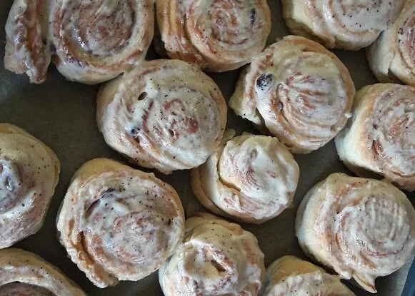 ШАГ 8 Достать из духовки горячие булочки и хорошенько их смазать.