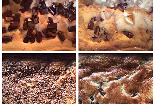 ШАГ 10 Выложить яблоки, шоколад, крем и выпекать оставшееся время, всего 25 минут.