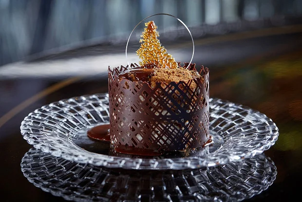 ШАГ 9 Оформить тарелку соусом из кориандра, выложить кусочек торта и подавать. Можно украсить свежими ягодами и фигурным шоколадом.
