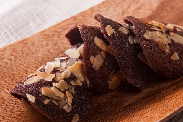 ШАГ 7 При желании можно посыпать печенье миндальными хлопьями, а также можно его слегка согнуть, обернув его вокруг скалки сразу же после того, как достали противень из духовки.