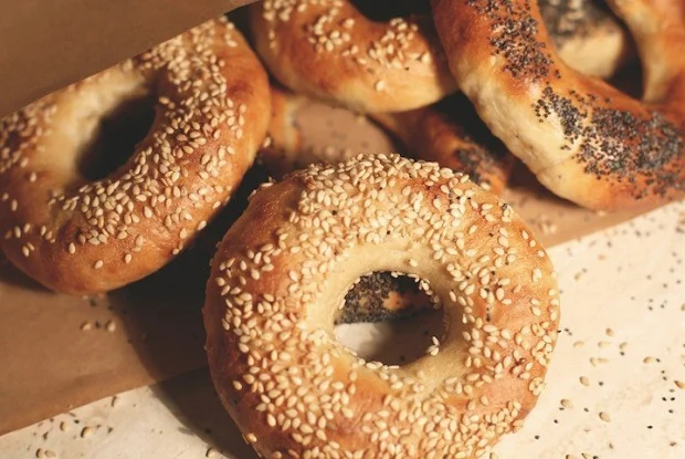 ШАГ 8 Достать бейглы и дать немного обсохнуть на бумажном полотенце.