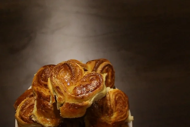 ШАГ 4 Противень смазать сливочным маслом и разогреть духовку до 170 градусов. Выпекать булочки в течении 25–30 минут. Спустя 10 минут выпекания смазать верх булочек яичными желтками.