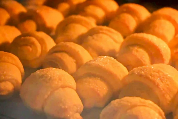 ШАГ 3 Выпекать рогалики 30-35 минут при 180-190С. Рогалики лучше есть теплыми или полностью остывшими. Выпечка остается вкусной и мягкой и на второй день.