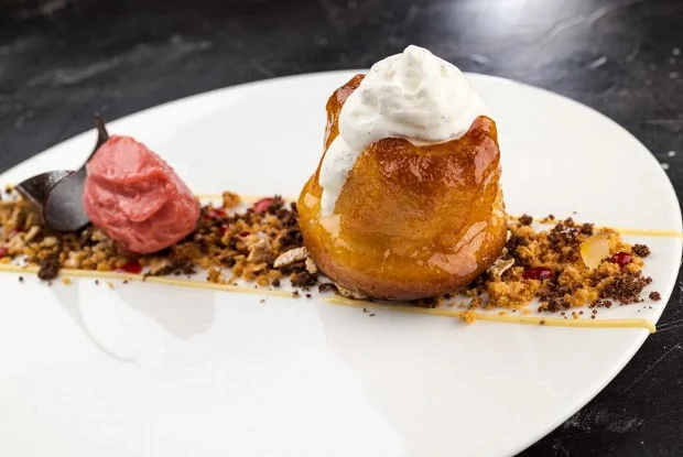 ШАГ 9 Подавать бабу вместе с земляничным сорбетом и карамелизированым миндалем.