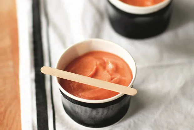 ШАГ 3 Выдержите смесь в холодильнике 4 часа, процедите и заморозьте в мороженице 40–50 минут. Мягкое мороженое разложите по стаканчикам и заморозьте.