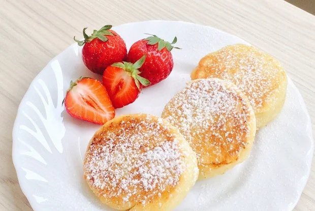 ШАГ 4 На небольшом огне разогреть сковороду и налить подсолнечное масло. Взять колобки, придавить (сделать их лепешкой). Сырники должны быть примерно одной толщины и величины. Выложить на сковороду. Дальше подходить смотреть, пока не поджарятся. Регулярно переворачивать.