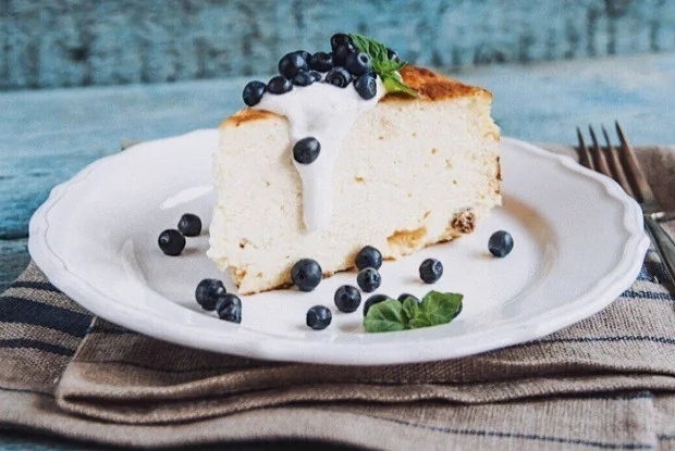 ШАГ 5 Готовую творожную запеканку достать из духовки и остудить. Сверху можно присыпать корицей и украсить свежими ягодами.