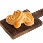 ШАГ 3 Расстоявшееся тесто обмять на подпыленном мукой столе и разделить на десять равных частей. Каждую часть раскатать в прямоугольник, смазать его растопленным сливочным маслом и посыпать сахаром. Скатать прямоугольник по длинной стороне в трубочку, сложить трубочку вдвое, сделать надрез на сгибе и раскрыть так, чтобы получилась форма сердца.