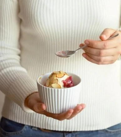 ШАГ 5 Смешайте все вместе и добавьте вишню и хлопья миндаля.