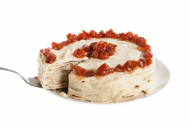 ШАГ 5 Коржи можно обрезать по бокам, а можно оставить как есть, если они одинаковые. Каждый корж смазать хорошим слоем сметанного крема. Остатками крема покрыть торт по бокам. Украсить торт можно крошками из обрезков коржей или любимым вареньем.
