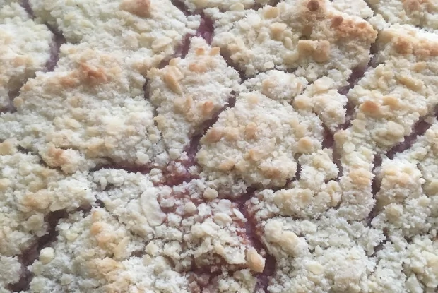 Творожный пирог с малиной и ананасами