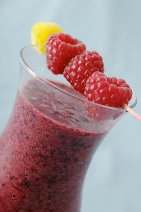 ШАГ 2 В блендере смешайте 0,5 стакана воды после замачивания фиников, финики, орехи и малину до однородного состояния.