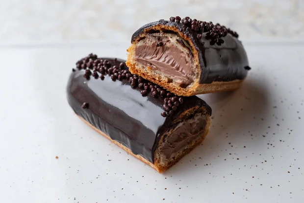 ШАГ 13 Проколоть донышки эклеров в трех местах. Наполнить их кремом, начиная с краев. Украсить по вкусу.
