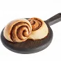 ШАГ 3 Расстоявшееся тесто обмять и раскатать в большой прямоугольник размером примерно 30 на 40 см. Растопить 120 грамм сливочного масла, слегка смазать им тесто, посыпать смесью коричневого сахара и корицы и сбрызнуть оставшимся маслом. Свернуть тесто в длинный рулон. Нарезать его на 12 одинаковых цилиндров высотой примерно 2,5 см.