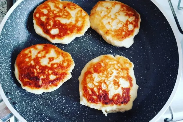 ШАГ 6 На раскаленную сковороду распылить масло (или смазать кистью) и выкладывать оладьи. Если смесь получится жидкая, то можно выкладывать ложкой или маленьким половником, если получится «тестом», то можно слепить толстенькие оладушки руками.