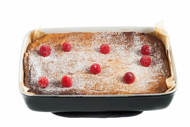 ШАГ 4 Готовую запеканку присыпать сахарной пудрой и украсить свежей малиной.