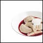 ШАГ 5 Вскипятить воду в большой кастрюле, бросить вареники, когда они всплывут, выложить их на порционные тарелки с соусом. Подавать со сметаной.