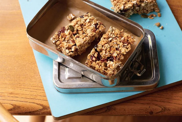 ШАГ 6 Утрамбовать гранолу на подготовленном противне и дать полностью остыть. Застывшую гранолу выложить на разделочную доску и разрезать на батончики.
