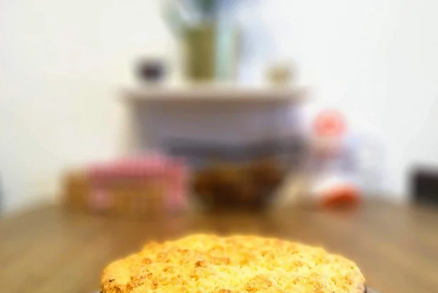 ШАГ 6 И в конце равномерно посыпать вторую половину первой смеси, очень аккуратно, не приминая, чтобы верхний слой остался воздушным и не смешался с начинкой.