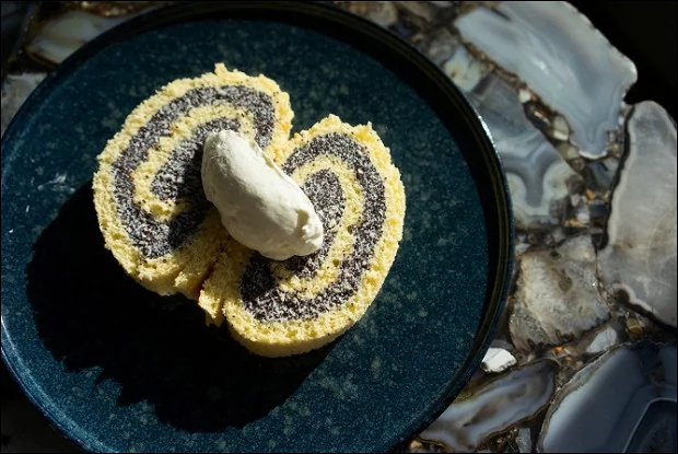 ШАГ 11 Отрезать хвосты. Поставить рулет на ночь в холодильник. Мак станет еще более мягким. Бисквит впитает в себя лишнюю влагу из крема. Все вместе станет сочнее. Подавать со сметаной.