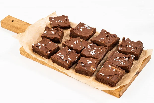 ШАГ 6 Равномерно покрыть глазурью брауни и посыпать крупной солью. Дать полностью остыть, затем разрезать на порционные квадратики.