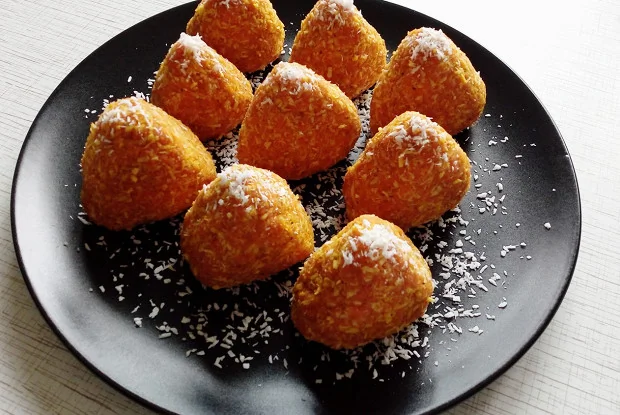 Морковь Бананы Кокосовая стружка Мед Растительное масло Лимонный сок Молотый имбирь Куркума Молотый черный перец Вода главная Выпечка и десерты Японская кухня Веганская еда