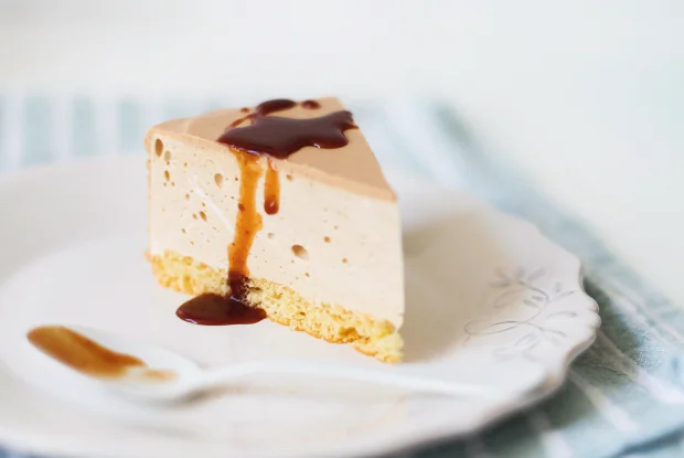 ШАГ 6 Влить еще горячий сироп небольшой струйкой в белки, продолжая взбивать. Когда сироп закончится, продолжать взбивать несколько минут. Масса должна быть теплой. Добавить масляный крем, быстро перемешать (помните, что агар-агар начинает застывать при 40 градусах). Перелить суфле в форму на бисквитный корж. Убрать торт в холодильник на час, затем достать из формы и убрать бумагу или пленку, чтобы торт можно было глазировать.