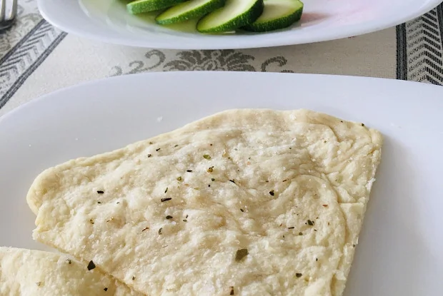ШАГ 4 Взять небольшой шарик теста и сформировать тонкую круглую лепешку. Выпекать можно на пергаментной бумаге. Раскатывать фокаччу прямо на горячем противне.