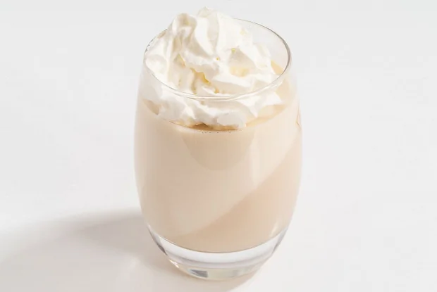 ШАГ 7 Когда первая половина панна-котты застынет, поставить бокалы на стол и влить к ним сливки с ликером. Поставить в холодильник до застывания.