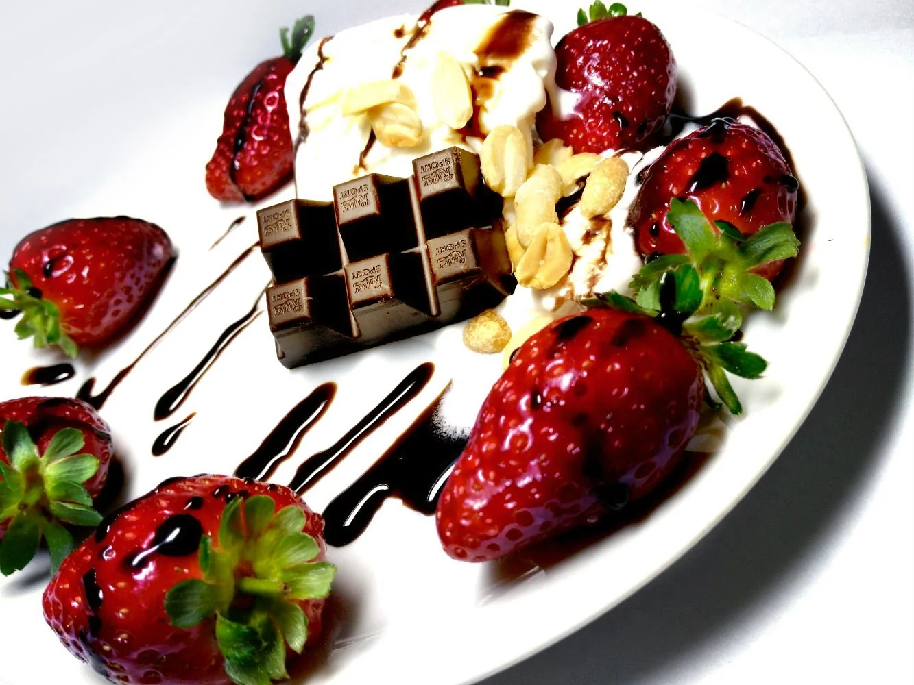 ШАГ 7 Украсить спелой клубникой, шоколадом и орешками.
