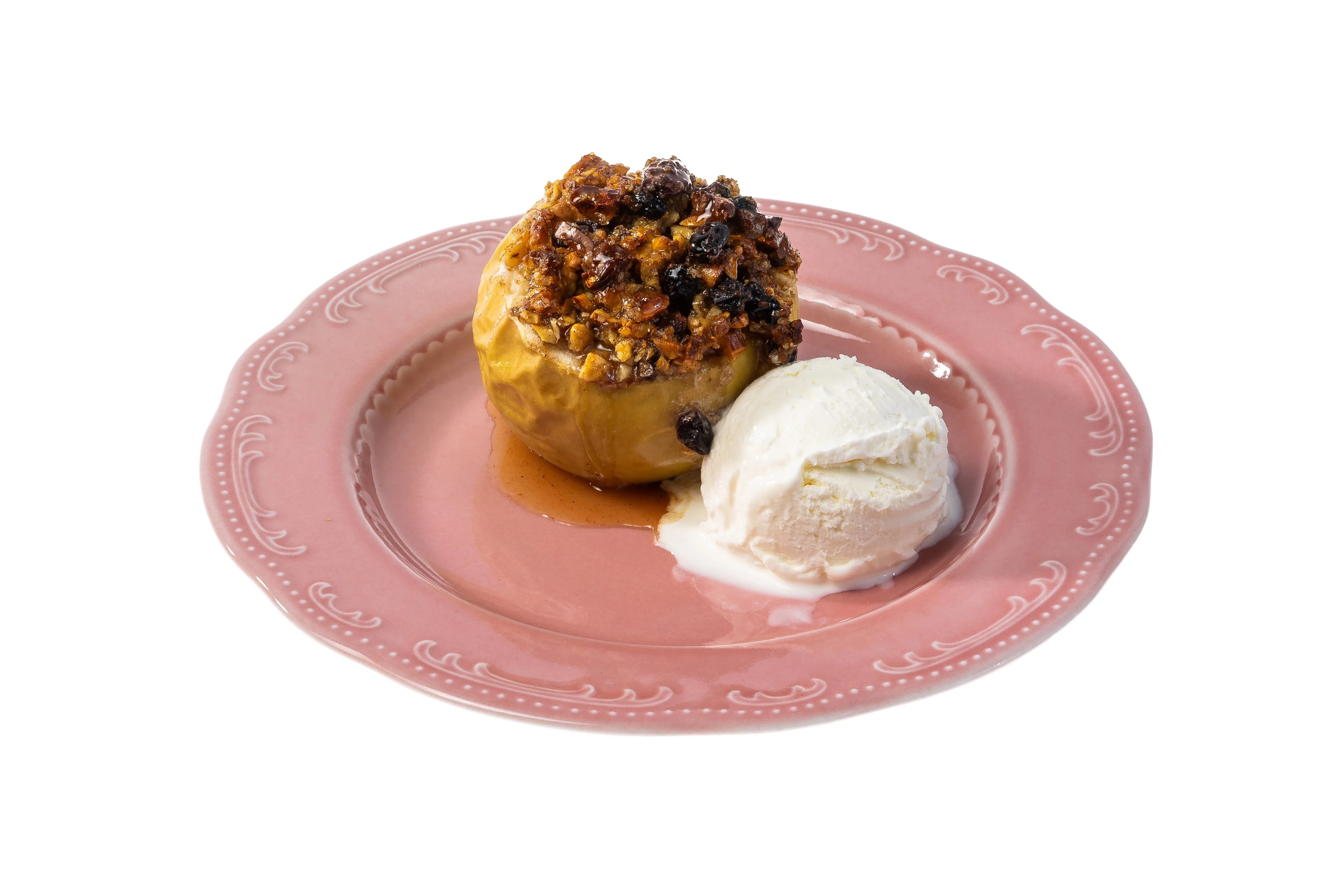 ШАГ 3 Выложить в яблоки ореховую начинку и отправить их в духовку, разогретую до 180 градусов, на 30 минут. Готовые яблоки подавать с шариком мороженого.