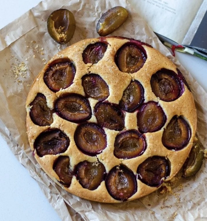 ШАГ 2 Сливы разрезать пополам и вынуть косточку, выложить на тесто, присыпать сахаром и отправить в разогретую до 180 градусов духовку на 40 минут.