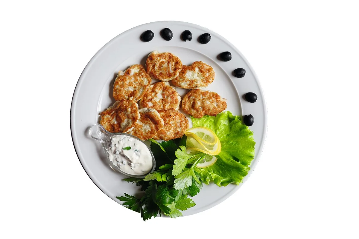 Ингредиенты для приготовления Оладьи из судака с соусом: