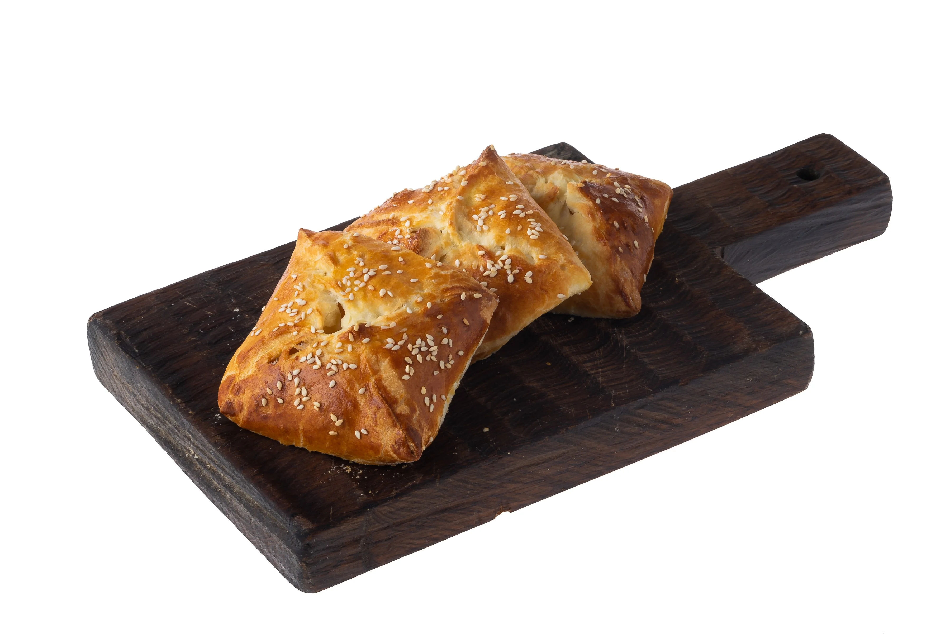 ШАГ 6 Смазать слойки яйцом, посыпать их кунжутом и отправить в духовку, разогретую до 200 градусов, на 20 минут.